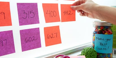 Ask your students to estimate how many pieces are contained inside the jar. Have them write their guess on a Post-it® Note.