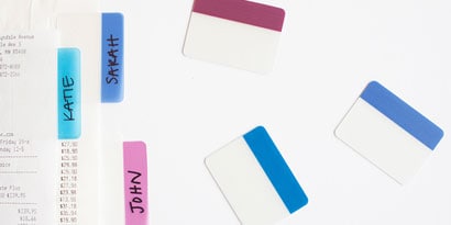 For any subsequent grocery trips, make sure whoever pays keeps the receipt. Then, when it’s time to settle up, collect each receipt and label it with a Post-it® Tab marked with the payer’s name.